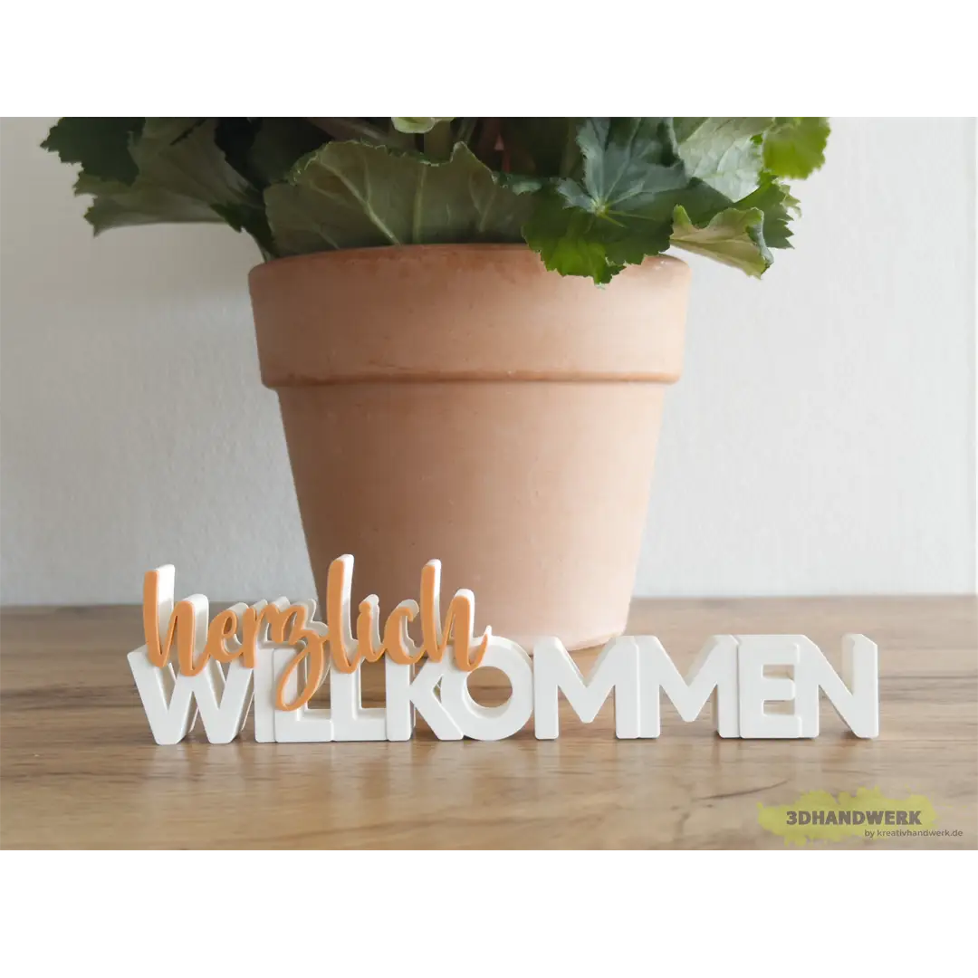 Mit diesem liebevoll gestalteten Schriftzug „herzlich WILLKOMMEN“ setzen Sie ein echtes Statement in Ihrem Zuhause oder Büro. Die Kombination aus warmem Orange und klarem Weiß sorgt für eine freundliche und einladende Atmosphäre, die jeden Besucher sofort willkommen heißt. Das dekorative Element ist nicht nur ein Blickfang, sondern auch ein Ausdruck von Gastfreundschaft und Herzlichkeit.