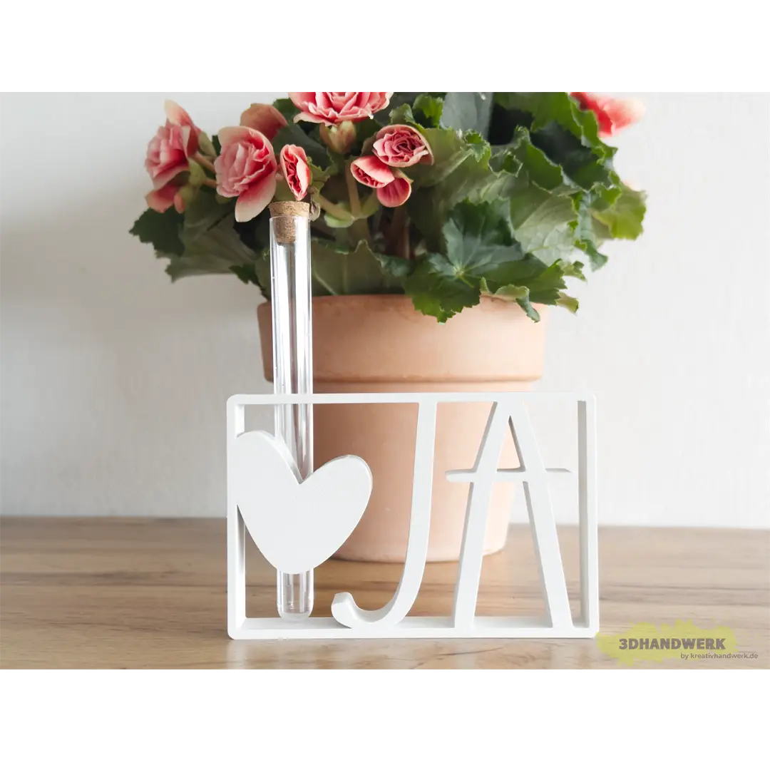 Dieser 3D-gedruckte Schriftzug „JA“ ist mehr als nur Dekoration – er ist ein klares Bekenntnis zur Liebe. Ob zur Hochzeit, Verlobung oder als romantisches Geschenk: Das Design vereint Symbolkraft und Ästhetik auf besonders charmante Weise. Das integrierte Herz steht für Verbundenheit und Wärme, während das schlichte, moderne Erscheinungsbild für stilvolle Zurückhaltung sorgt.