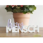 Ein besonderes Highlight ist das kleine Glasröhrchen, das sich perfekt für Trockenblumen oder kleine frische Blüten eignet. Damit wird jedes Arrangement individuell und einzigartig. Durch die ruhige, cremeweiße Farbgebung fügt sich der Schriftzug harmonisch in verschiedenste Dekokonzepte ein – ob Boho, klassisch oder modern. Die stabile Konstruktion sorgt dafür, dass das Objekt sicher steht, ohne wuchtig zu wirken.